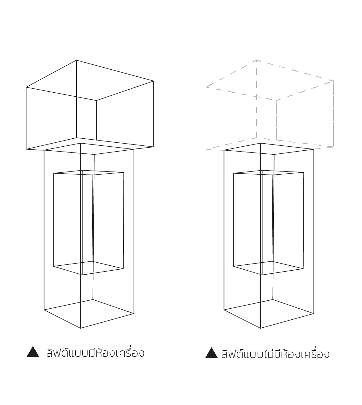 ตัวลิฟต์ได้รับการออกแบบใหม่โดยคำนึงถึงมาตรฐานและความปลอดภัยเป็นหลัก จึงทำให้มอเตอร์ลิฟต์สามารถที่จะติดตั้งไว้ในช่องลิฟต์ได้ พร้อมขจัดห้องเครื่องลิฟต์ขนาดใหญ่ด้านบนออกไป ซึ่งเป็นการลดต้นทุนการก่อสร้างห้องเครื่องลิฟต์ หรือ สำหรับพื้นที่ที่ถูกจำกัดความสูงของอาคาร ทำให้เราสามารถใช้พื้นที่ได้อย่างมีประสิทธิภาพมากขึ้น